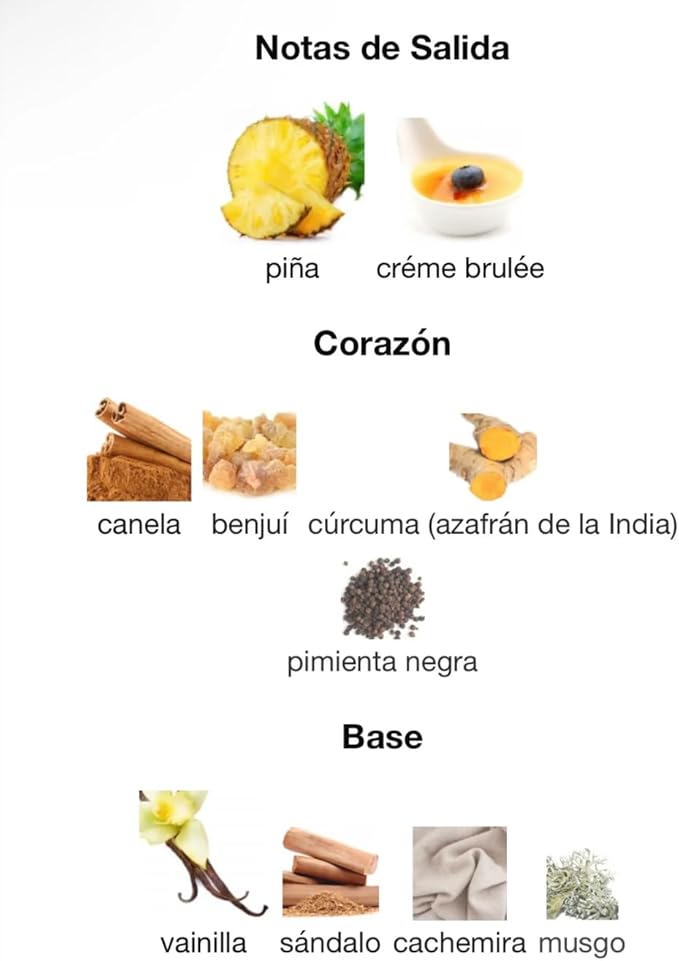 👉 La base crea una estela rica, sensual y persistente, con combinación de dulce y madera cálida.